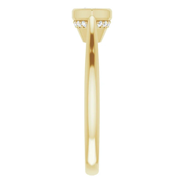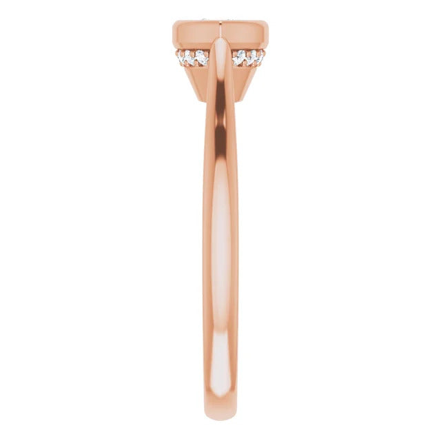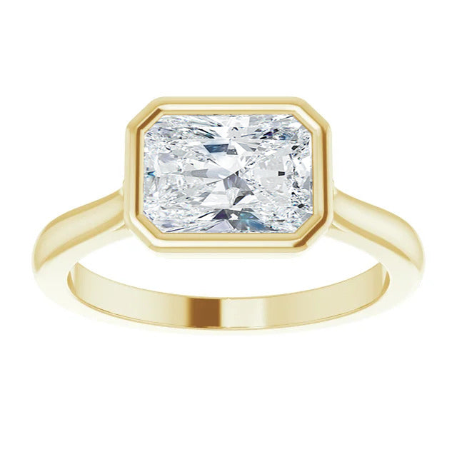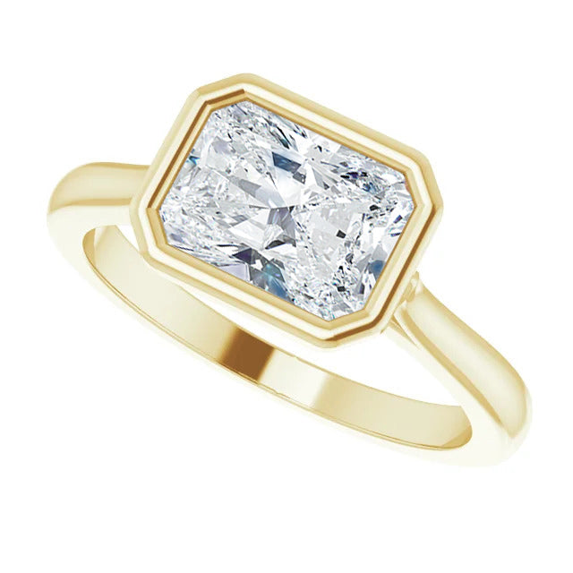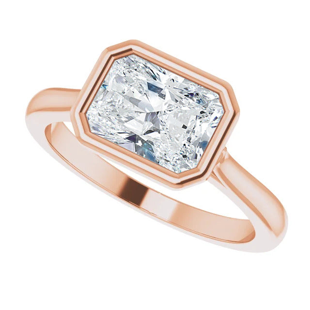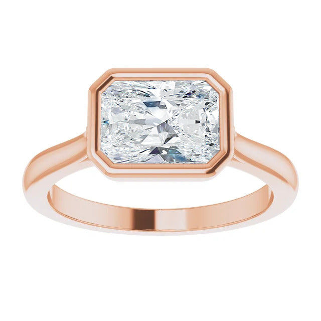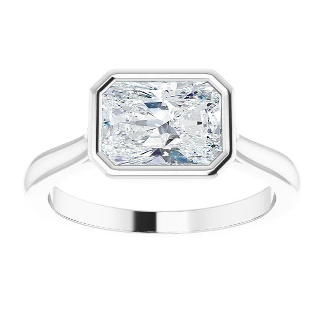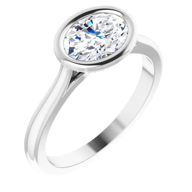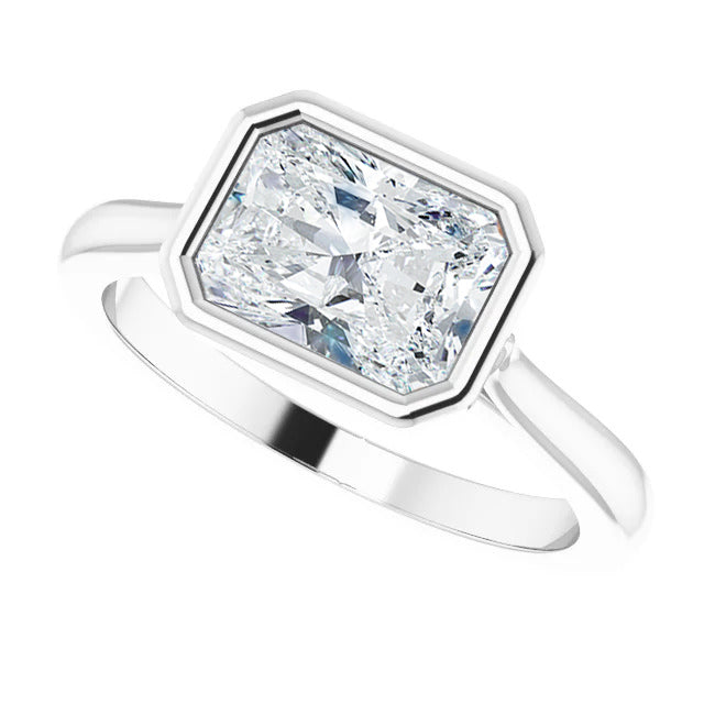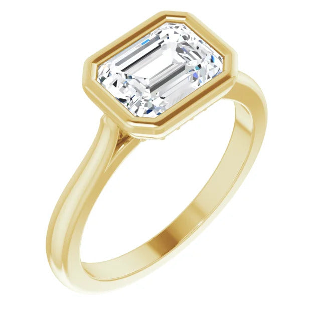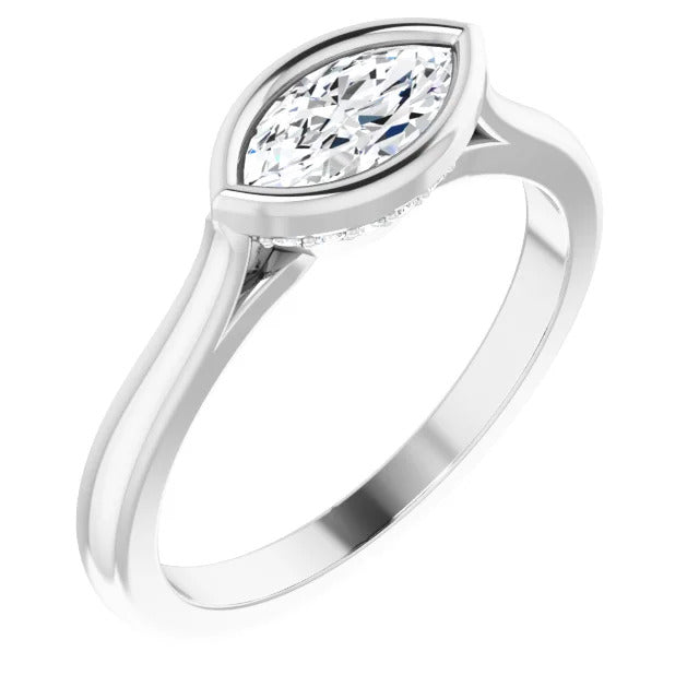 The Lilian is an enchanting engagement ring that captivates with its exquisite design. This cathedral setting showcases a bezel-set center stone and a hidden halo embellished with sparkling round brilliant diamonds, adding a touch of allure and elegance to the ring's design.
