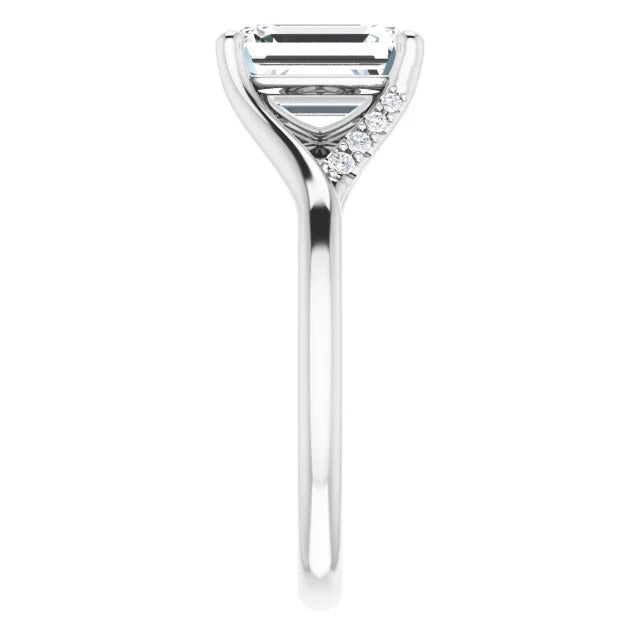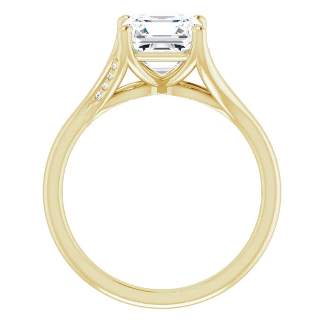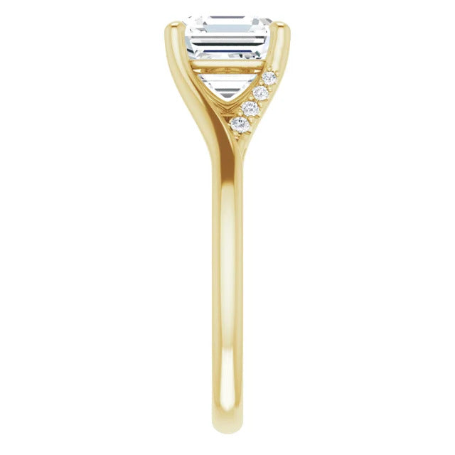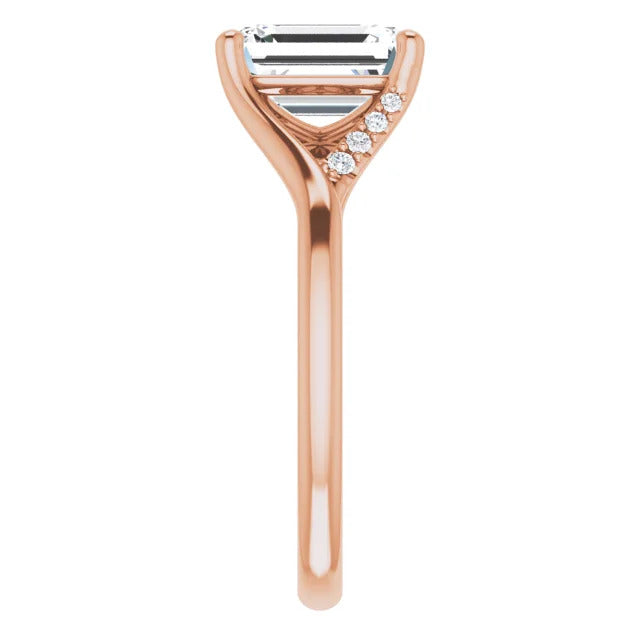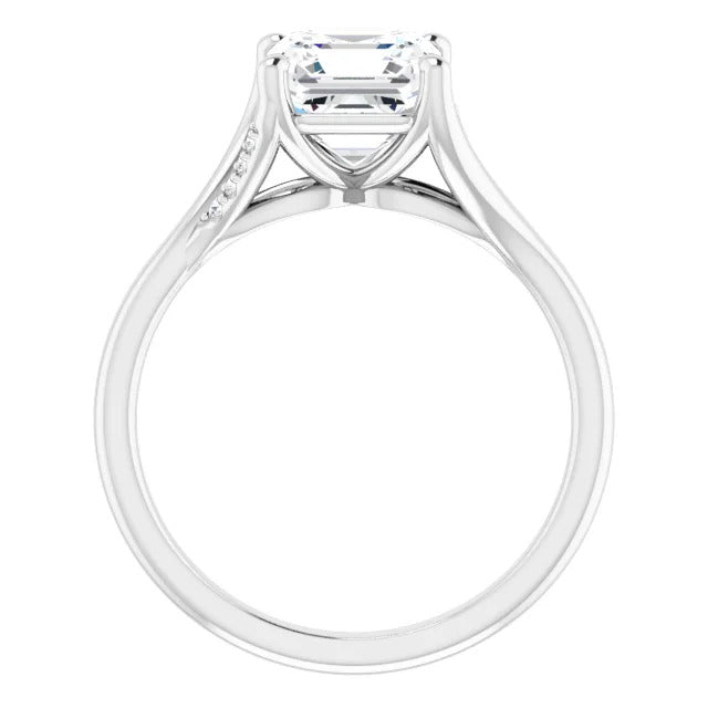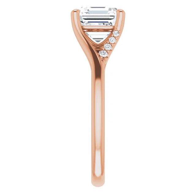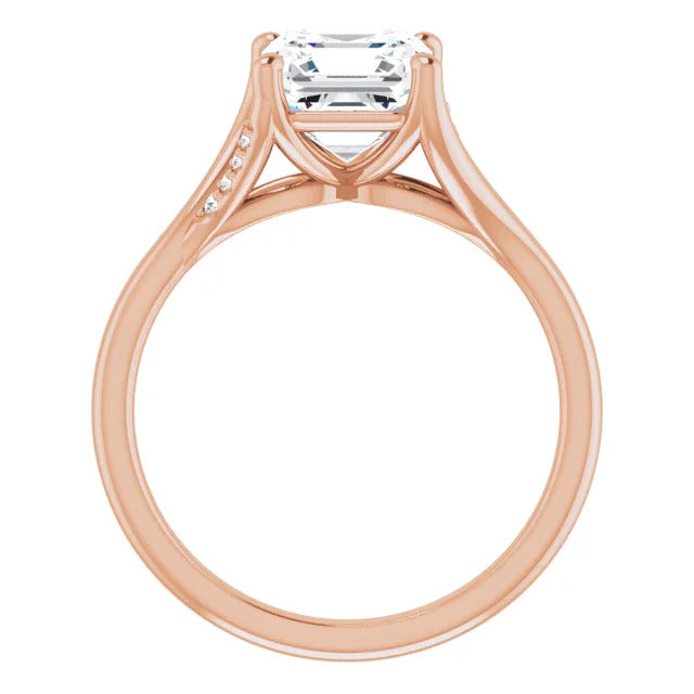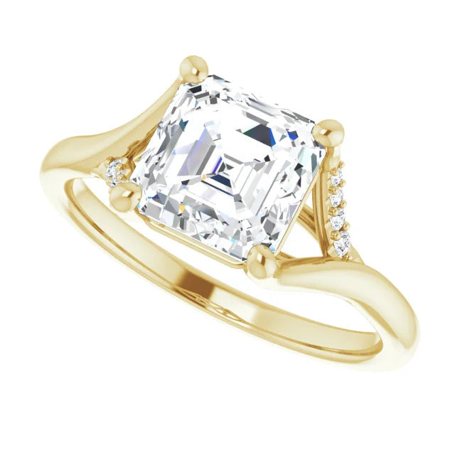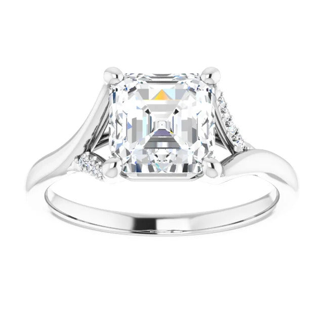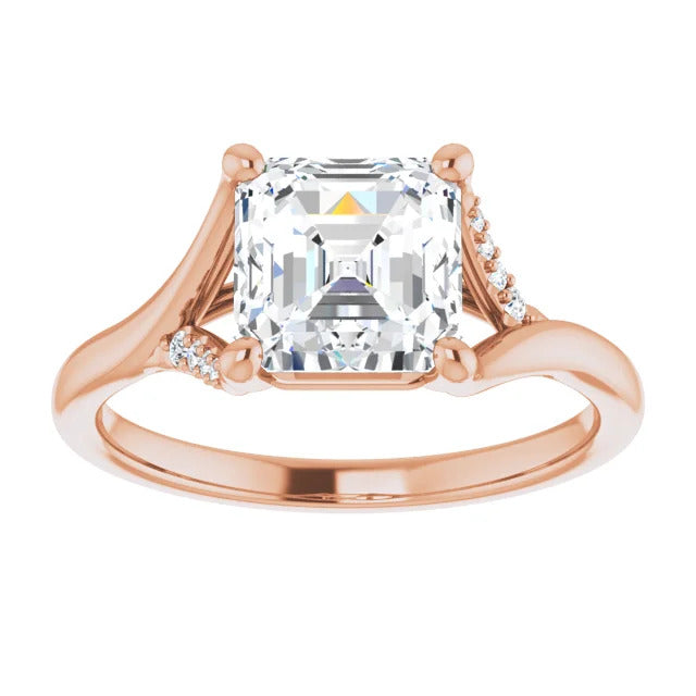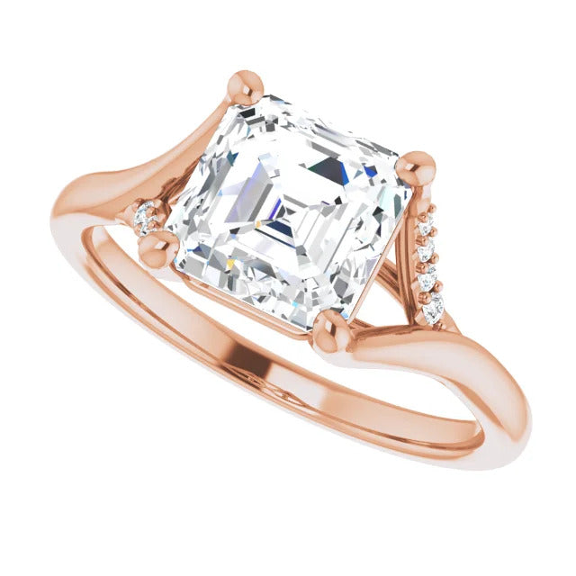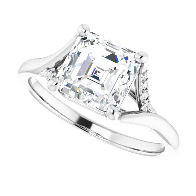 The Bianca engagement ring is a bewitching octagonal halo setting that showcases a bezel-set center gem delicately surrounded by a halo of shimmering pavé diamonds, creating a captivating display of refinement.