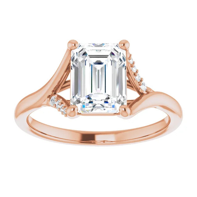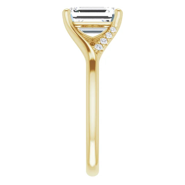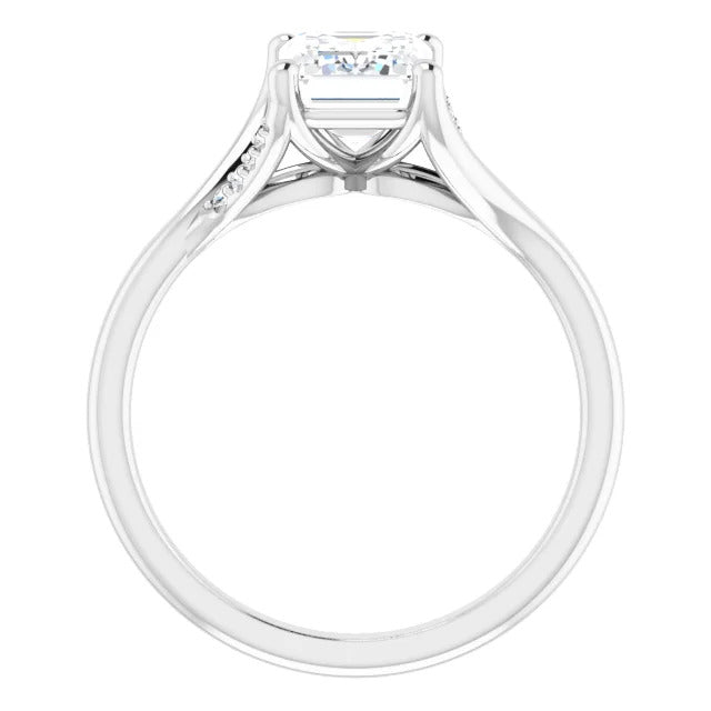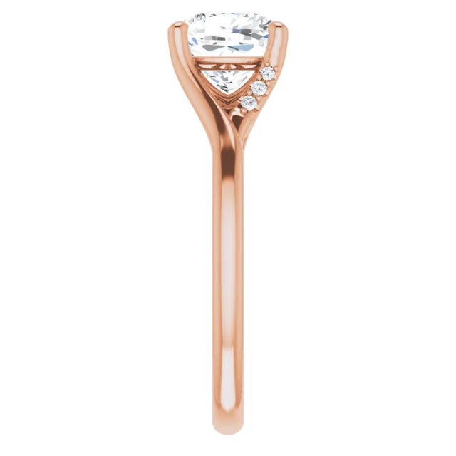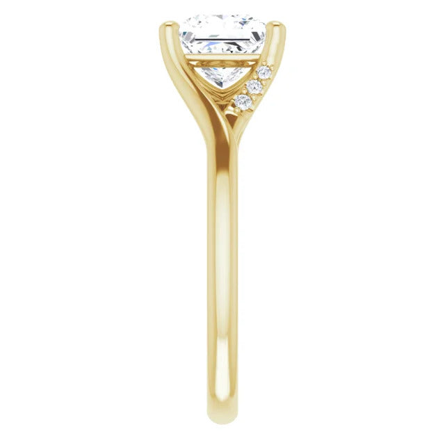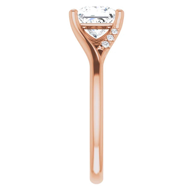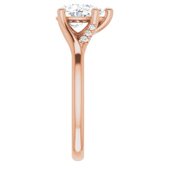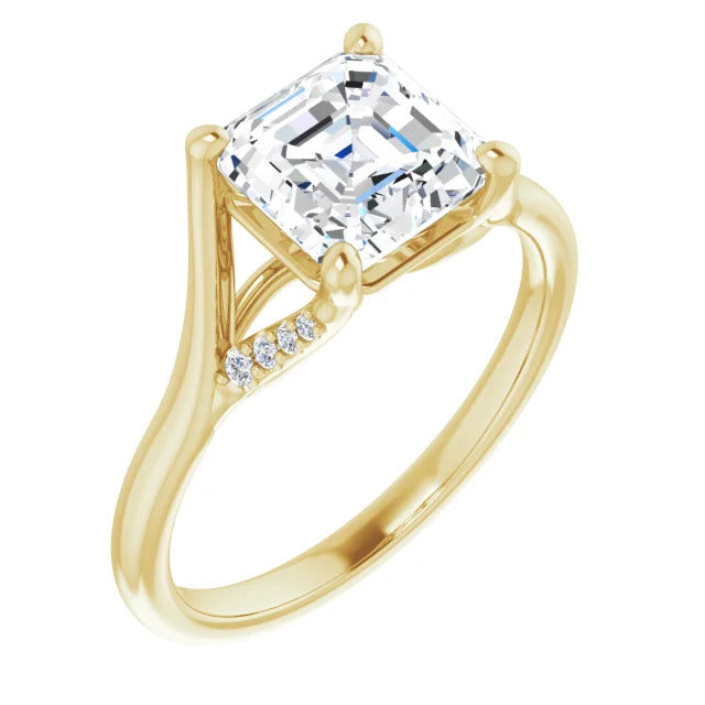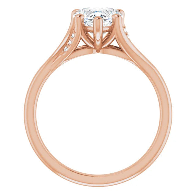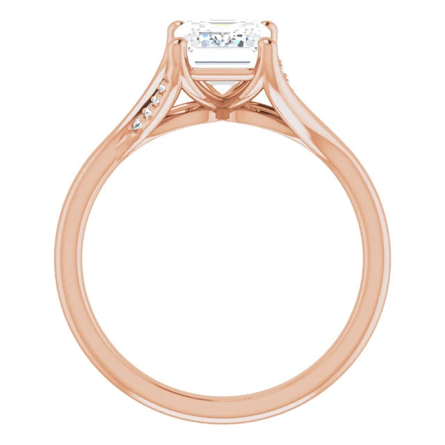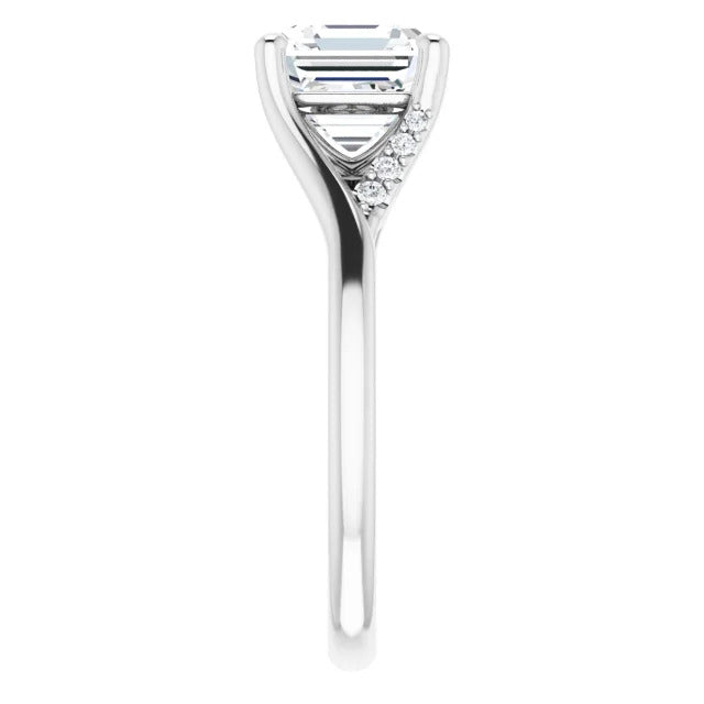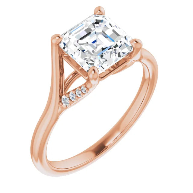 The Bianca engagement ring is a bewitching octagonal halo setting that showcases a bezel-set center gem delicately surrounded by a halo of shimmering pavé diamonds, creating a captivating display of refinement.