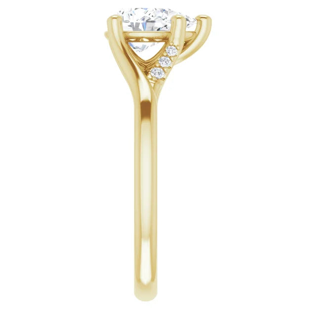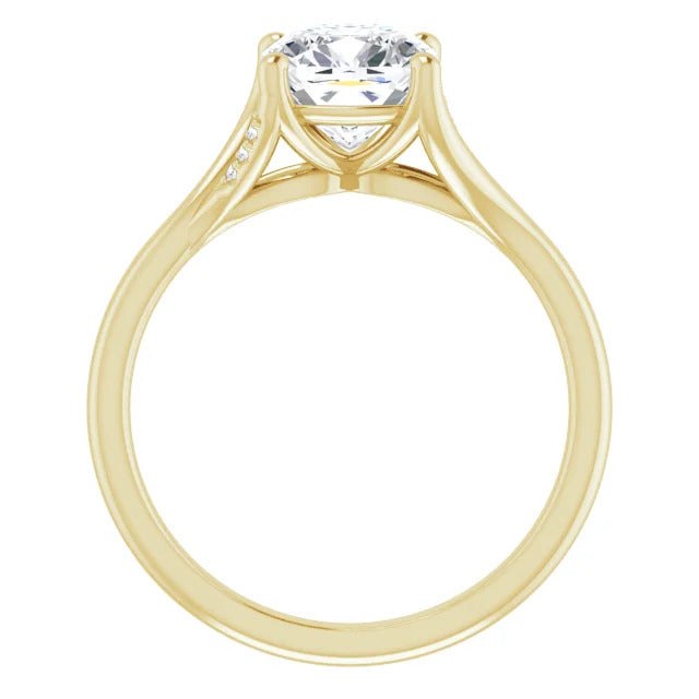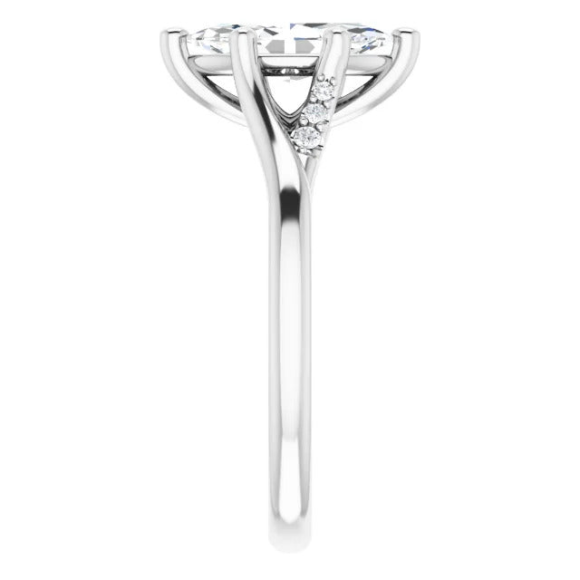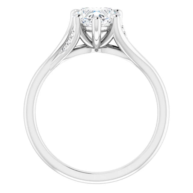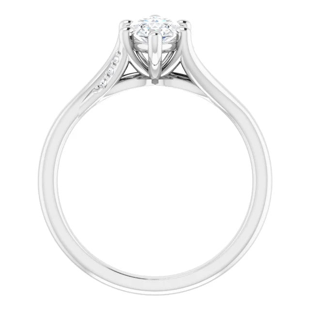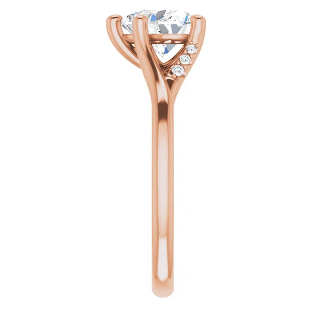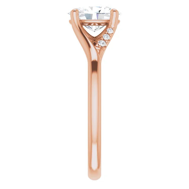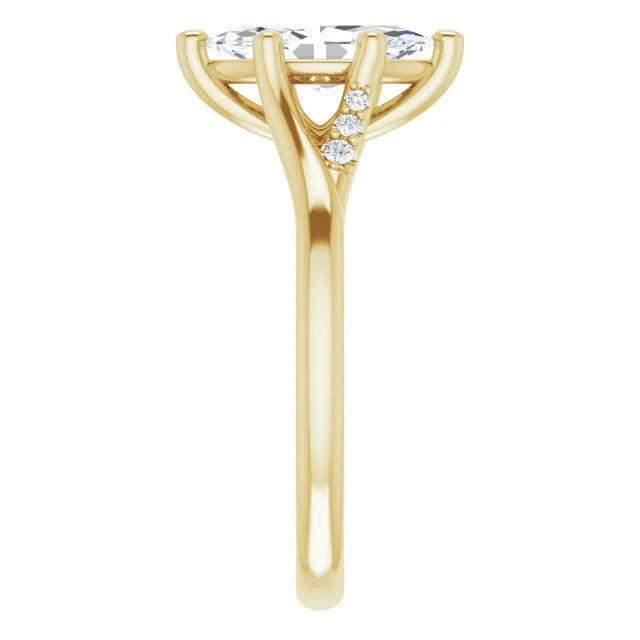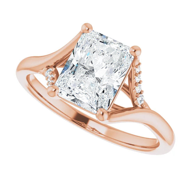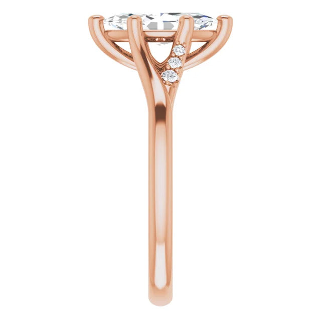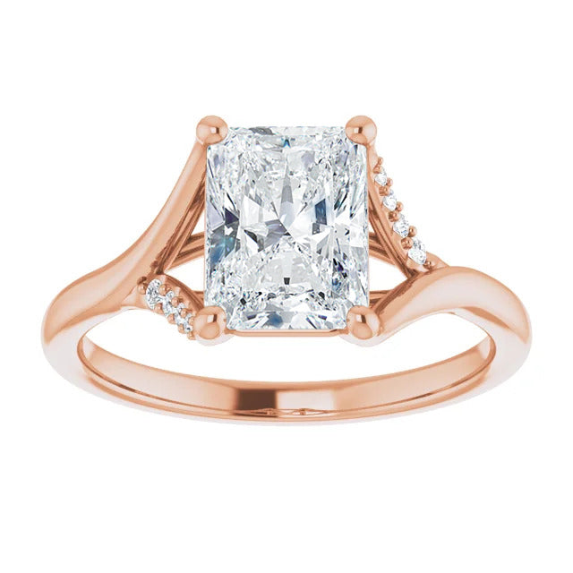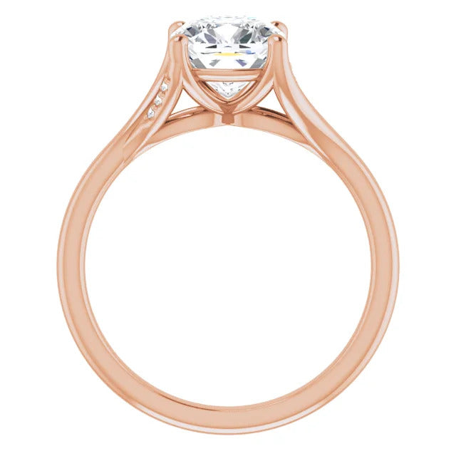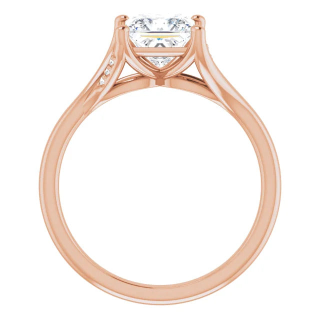 The Bianca engagement ring is a bewitching octagonal halo setting that showcases a bezel-set center gem delicately surrounded by a halo of shimmering pavé diamonds, creating a captivating display of refinement.