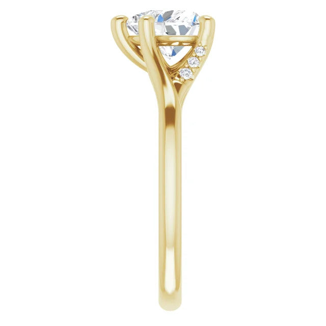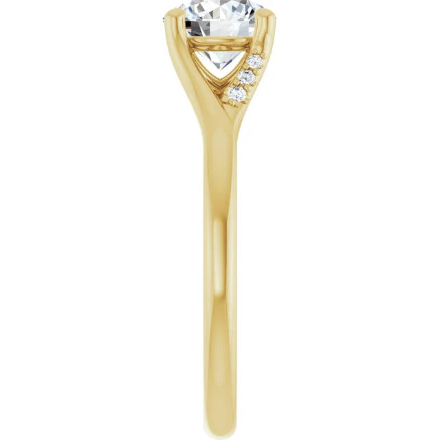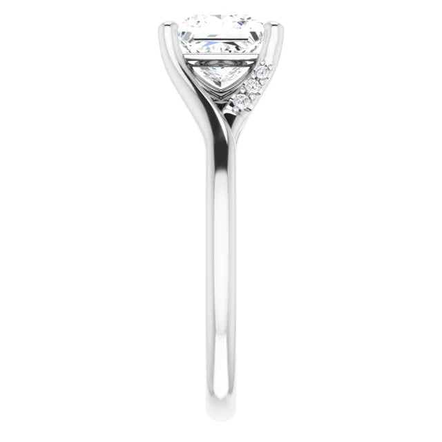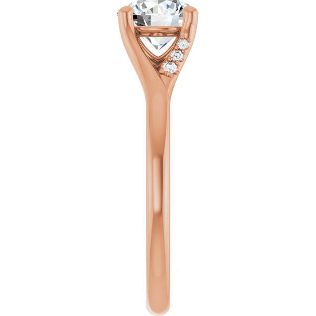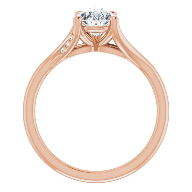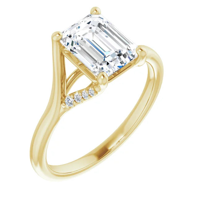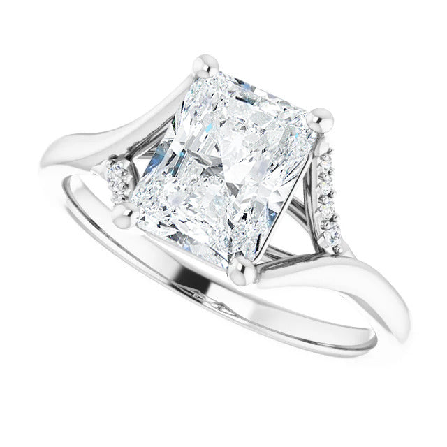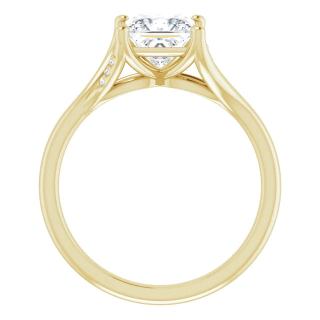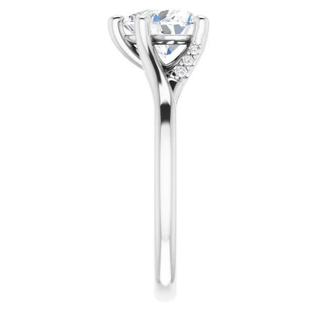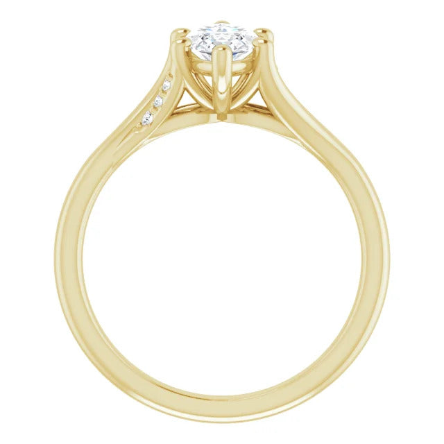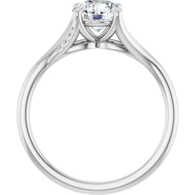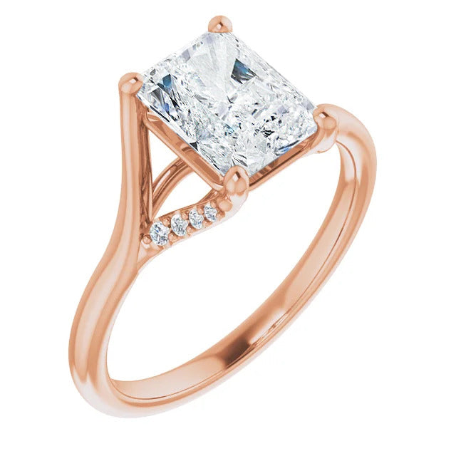 The Bianca engagement ring is a bewitching octagonal halo setting that showcases a bezel-set center gem delicately surrounded by a halo of shimmering pavé diamonds, creating a captivating display of refinement.