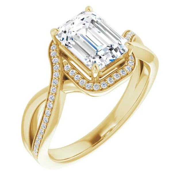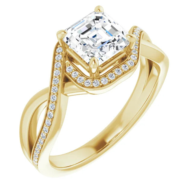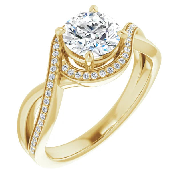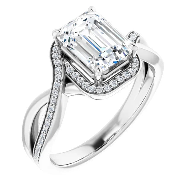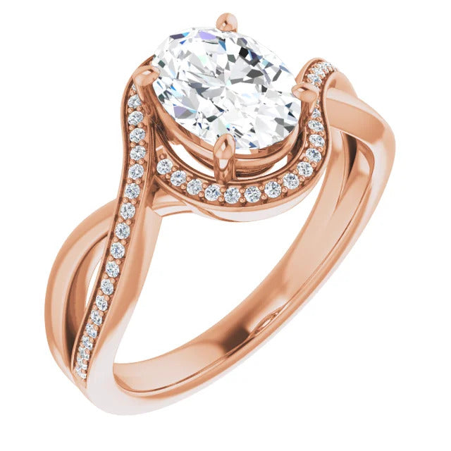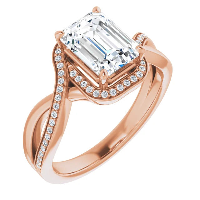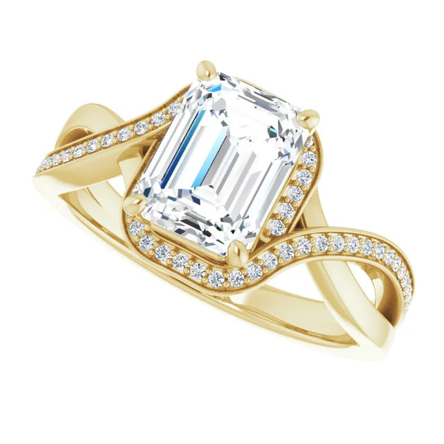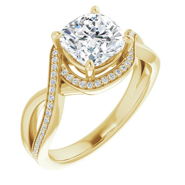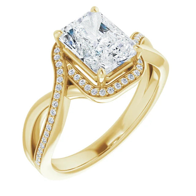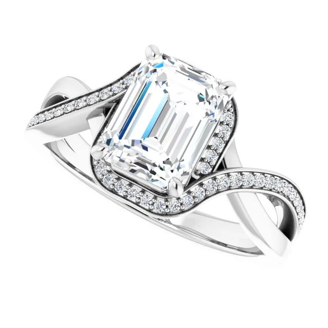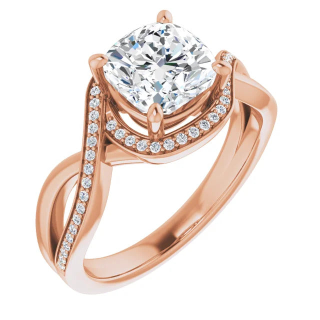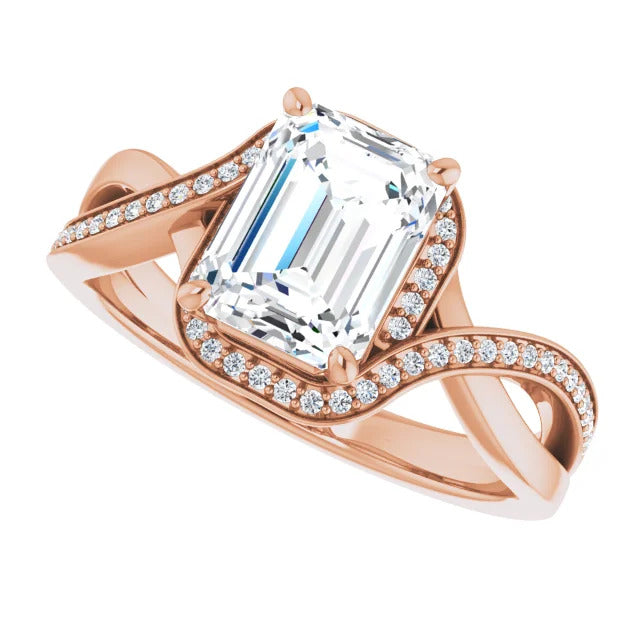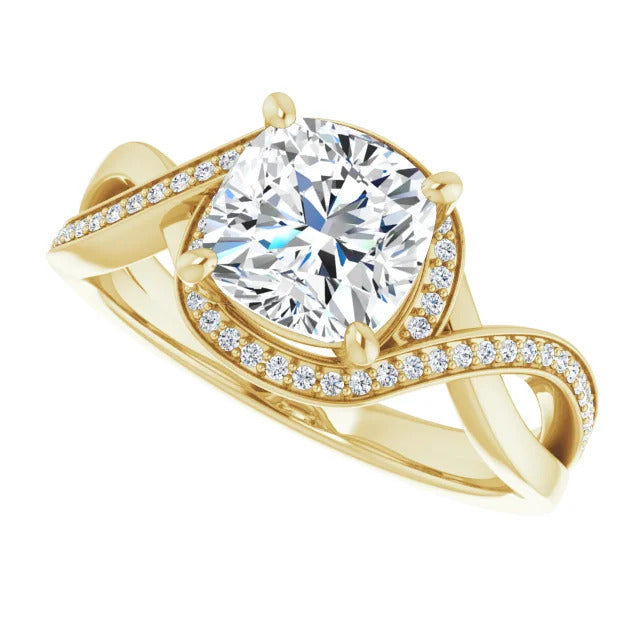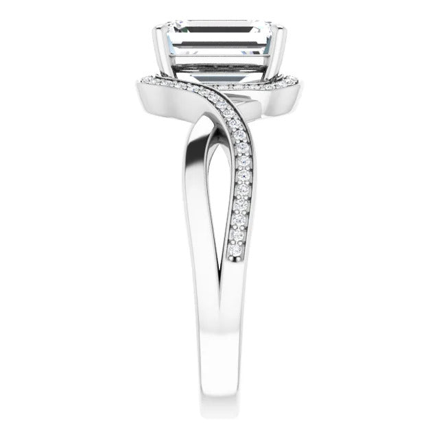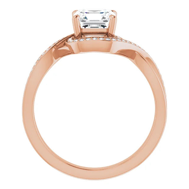The Tessa is an extraordinary engagement ring crafted for it's breathtaking beauty. With a stunning bypass design that showcases a glittering halo embracing the center stone and pavé diamonds delicately adorning halfway around the band, this ring blends modernity with timelessness.